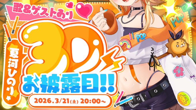 みんなとの宝物の日になりますように🥳 ✨#すぺしゃりて #vtuber pic.twitter.com/Rp1RV6TJSy— 夏河ひのり🎧🦁3/21(sat)3Dお披露目 (@HinoriNatsukawa) March 13, 2026