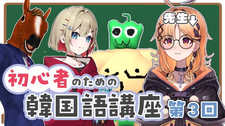 【#韓国語講座】🔰第3回韓国語講座🏫打倒!パッチム【烏丸ぴょこ/紅蓮罰まる/ばあちゃる/緑ピーマン】